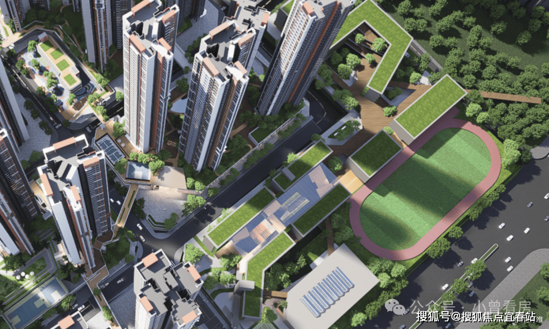 项目重点规划约6000㎡有氧体育活动场地,通过双层立体化集中布置,以天桥串联起运动社区的各个场地与专属社区,给予更多大城美好体验。