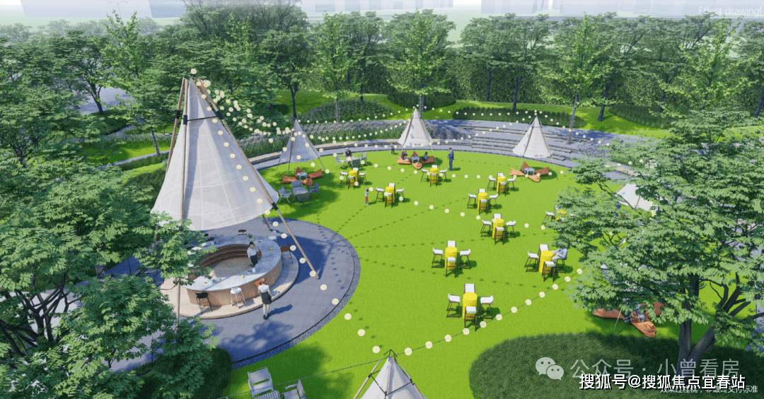 集市公园更具艺术气息,其功能包含可路演的星空舞台、可露营野炊的艺术休憩草坡等,以后在自家门口就能享受到野趣山园的美好时光。