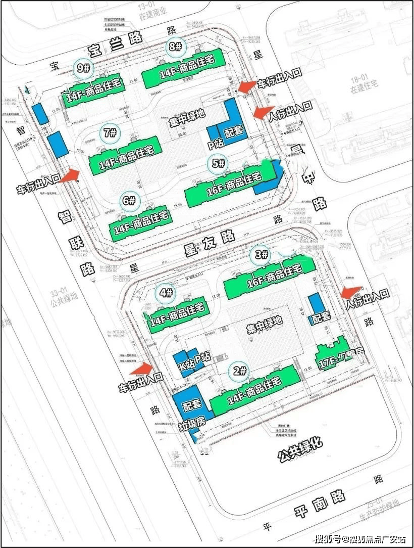 根据设计方案显示,地块拟建8栋14-16F高层住宅、1栋17F保障住宅以及若干配套用房,可售住宅约552套。