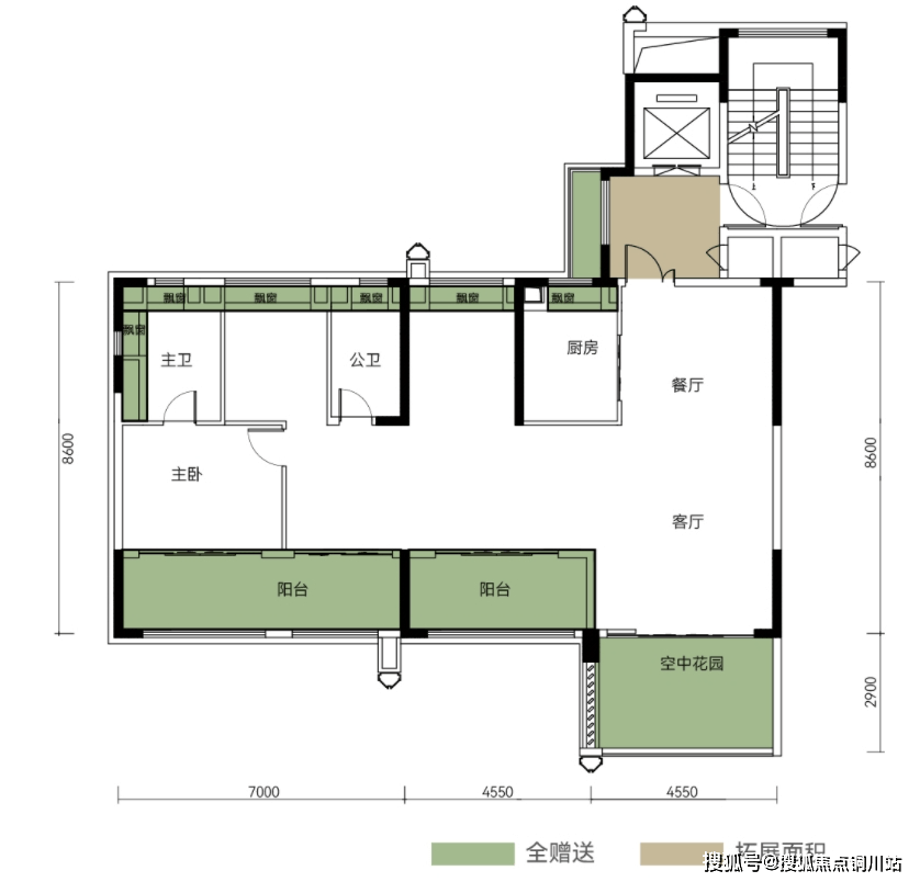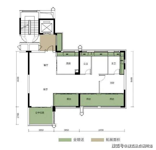 超大赠送面积(不计产权面积)+电梯前室拓展面积,139㎡最大综合建筑得房率达到136%