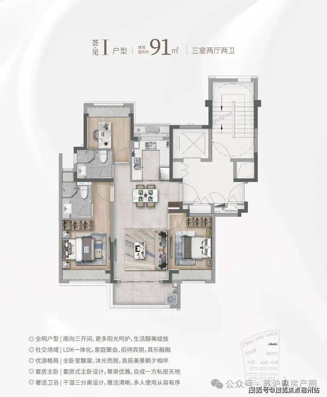 ①建面约91㎡3房2厅2卫:总价400万级预算错过不再有的高性价比之选!