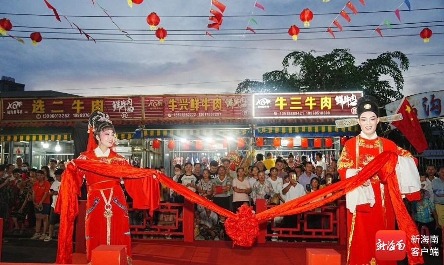 开幕式文艺表演也是亮点纷呈,为观众带来一场跨界融合的视听享受。《定安美食》选段用传统琼剧唱腔演绎定安特色美食文化,韵味十足;《刁蛮公主》《张文秀》等经典剧目选段,让戏迷们过足戏瘾。互动环节“外国人学琼剧”更是趣味性十足,外国友人跟着演员学习琼剧基本唱腔和动作,引得现场笑声不断。