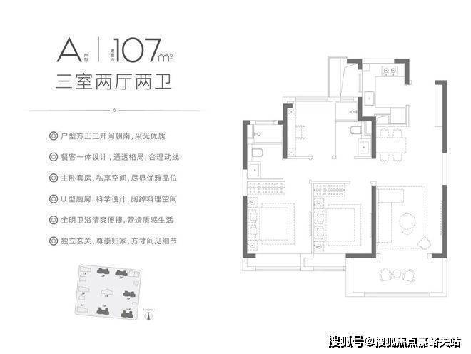 LDBK一体化、玄关入户、动静分区设计、U型厨房、双卧飘窗、强大收纳等多重优势于一体,在功能性与舒适度上几乎都做到了极致!