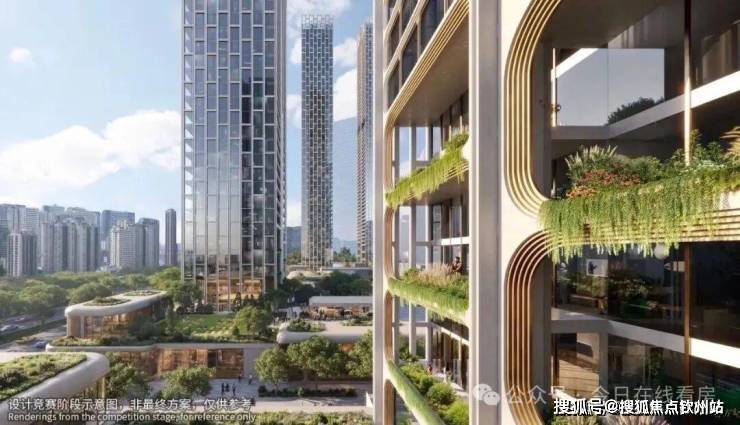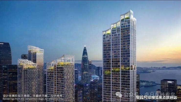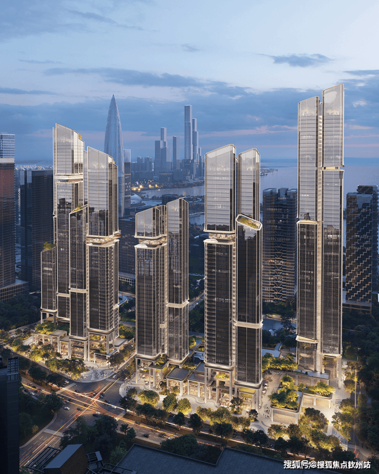 塔楼规划:由5座150-250米塔楼组成(1座250米公寓,4座住宅分别为150米、200米、200米、240米),采用错落布局和平面退台设计,优化深圳湾景观视野,层高3.6米,约40-70层(不含底商)。外立面采用全玻璃幕墙,设计灵感来自植物细胞的有机形态,原方案锐利阳刚,新方案柔软温润,类似天鹅湖花园和红树西岸,强调自然与居住融合,绿植丰富。
