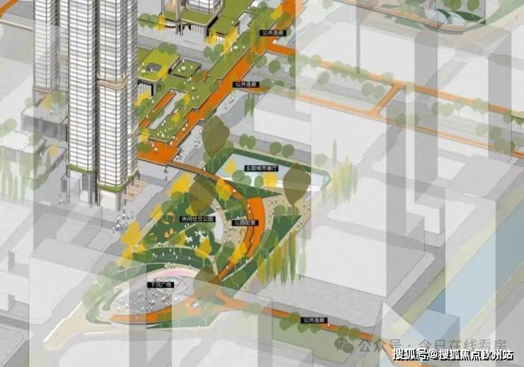城市级连通系统:通过四维立体步行系统(首层、二层、地下及空中连廊)连接商业、写字楼、人才公园和中心河,整合复合型立体底盘(商业+公园),实现住区与城市公共网络的无缝对接。