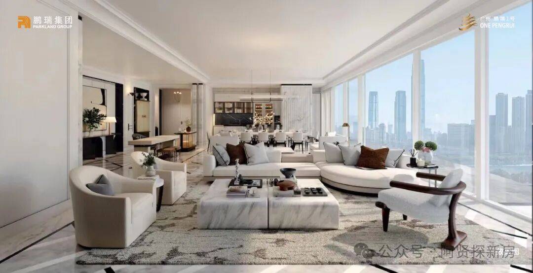 广州鹏瑞1号在售 T2栋和 T3 栋,面积包括320、370、450和550平方米大平层。此外,还有稀缺的江景头排750平方米大平层,以及1500和2000平方米顶层复式,全部产品均为商业性质。