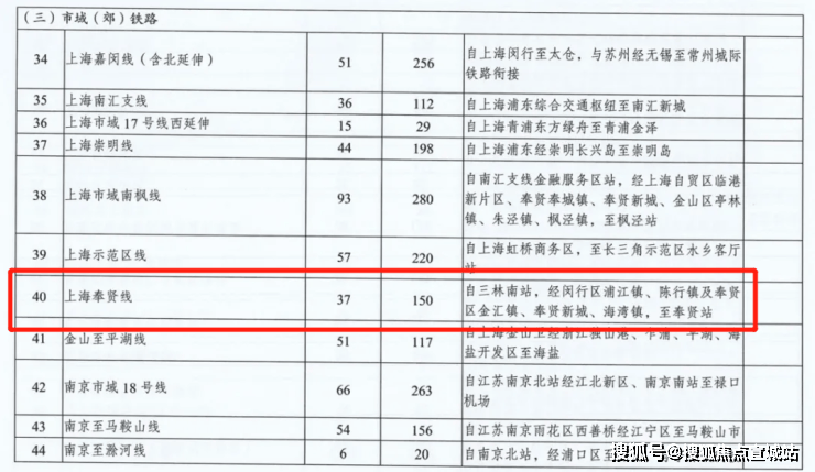 “将自三林南站,经浦江镇、陈行镇、奉贤金汇镇、奉贤新城、海湾镇到奉贤站”(来源规划)。