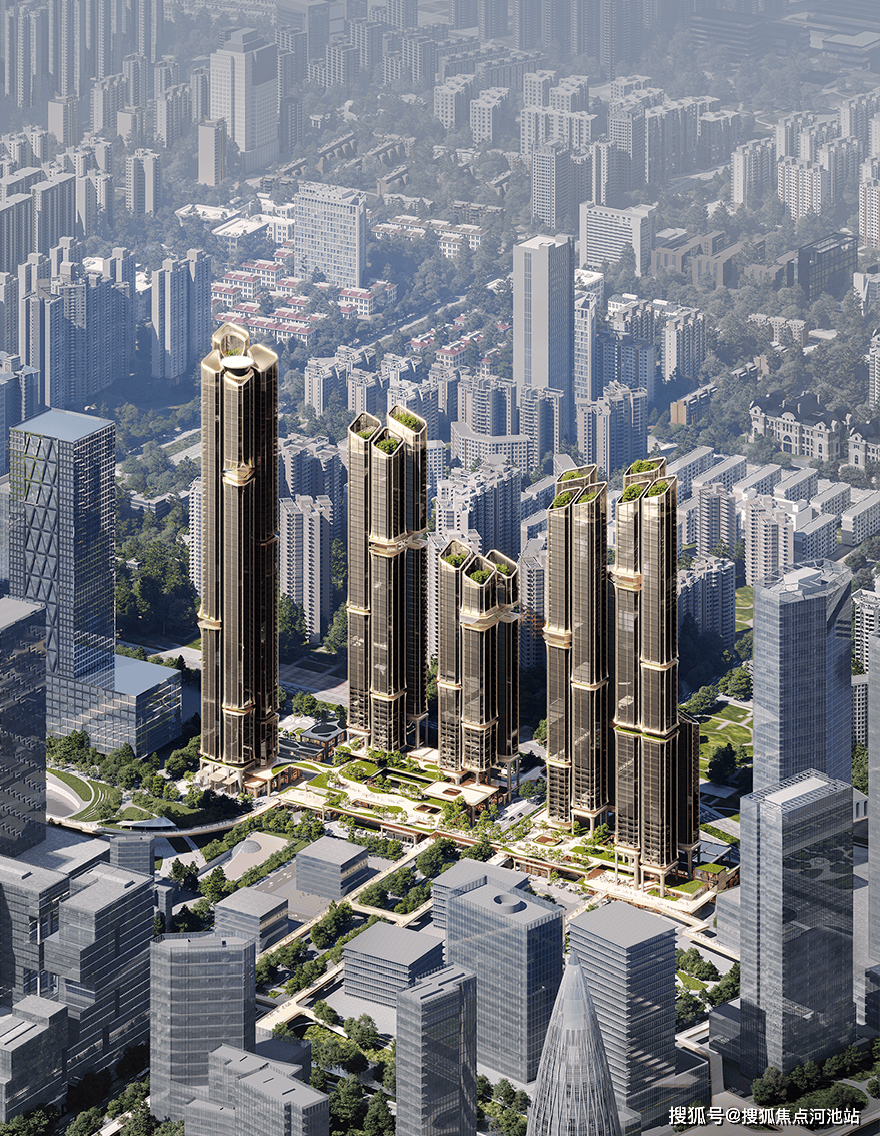 其设计以“竹韵”为灵感的外立面,搭配垂直空中花园体系,不仅每层都有空中院落,还设置了星空会所、架空泳池等共享空间,将传统围合感与现代美学完美融合。