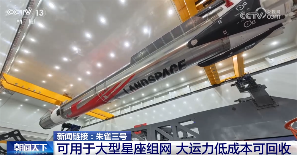 目前,朱雀三号正按计划实施星罩组合体垂直吊装对接演练,随后将返回技术区,为正式入轨发射及一级回收开展各项准备。