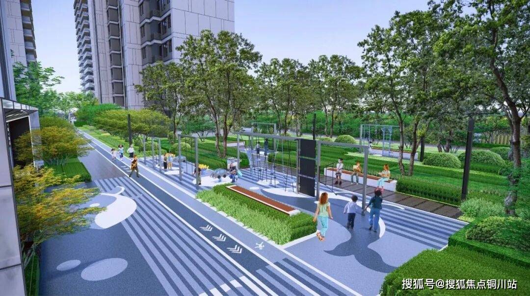 大门的口袋公园,将小区主入口与学校大门串联,铺出一条最美上学路,全程仅需3-5分钟,小孩上学开心、家长接送安心,并铺设阳光草坪、休息会客伞座、雕塑小景,与城市公园形成视觉延伸。