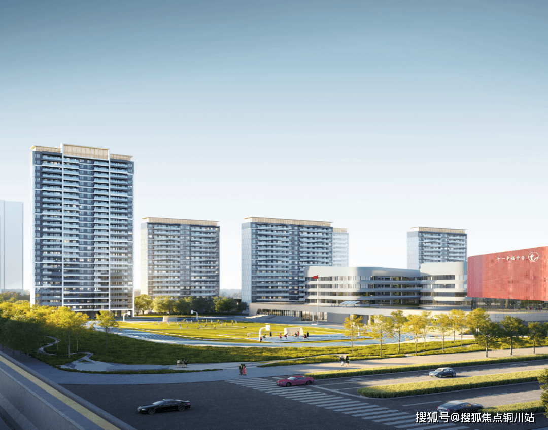 这所学校与二七滨江同款,皆为七一品牌的“嫡亲兄弟”,9年一贯制学校,建面约5.1万方,配建了足球场、体育中心、环形跑道、图书馆、艺术馆、空中花园、中心庭院、食堂等,预计2026年投入使用。