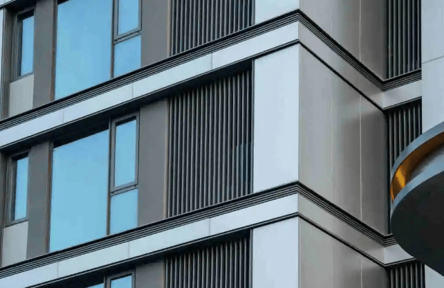 建筑设计:采用极简 “L” 型超纤细铝板线条,融合大面玻璃、石材等高级质材打造寰幕立面,筑就嘉兴全新的 “天空之翼” 建筑封面。