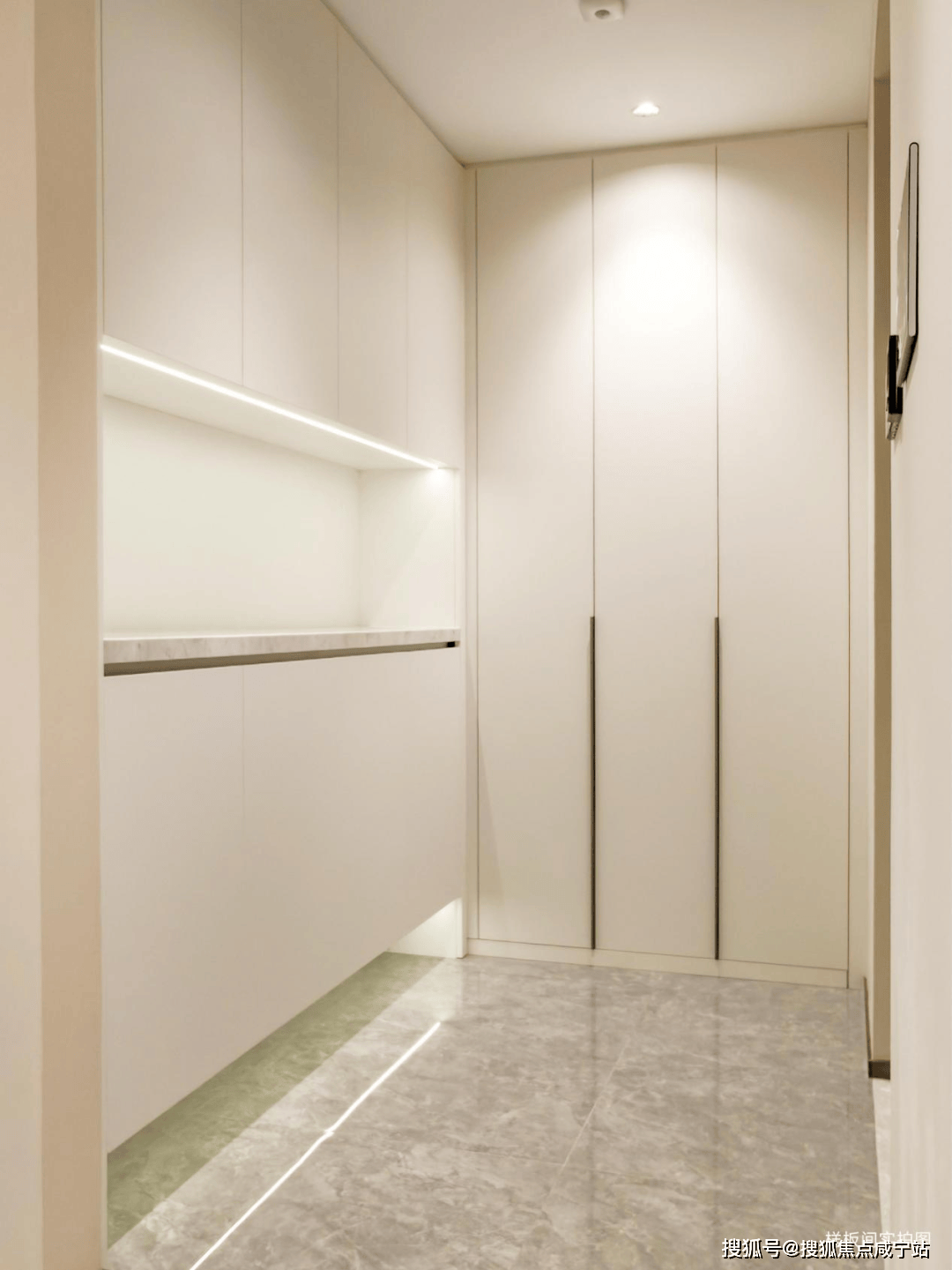 而作为归家动线的重要节点,入户门厅是生意场和生活处的过渡,一扇门的启合划分出了“家”与“外”的界线號,采用地上地下双精装入户门厅的设计,更在细节处精细考量。门厅墙面甄选大块岩板铺就,视觉一体感强,同时,与地库门厅入户处璀璨的星空顶质感呼应,让出入间步步优雅。