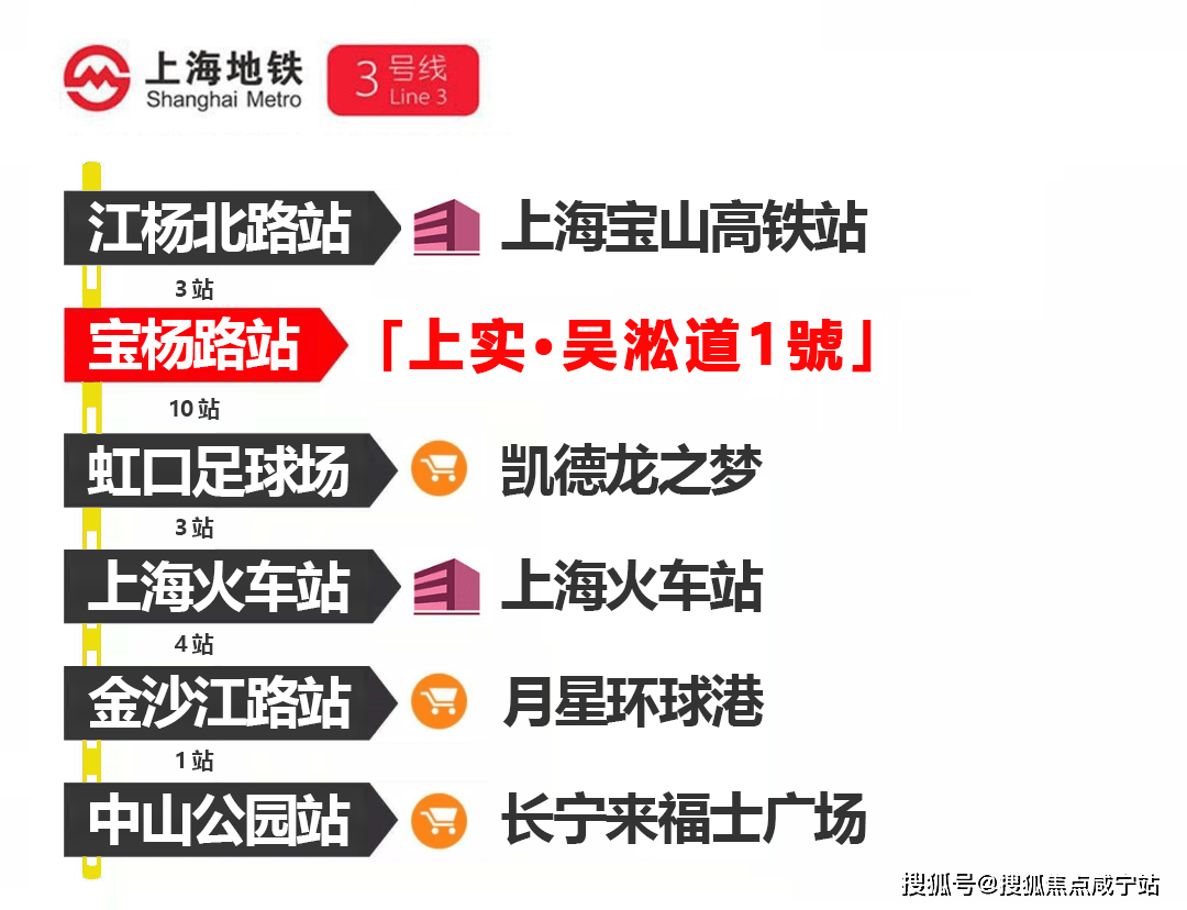 另外,沿地铁3号线宝杨路站出发,可以畅联凯德龙之梦、月星环球港、长宁来福士等多个超级商业体。