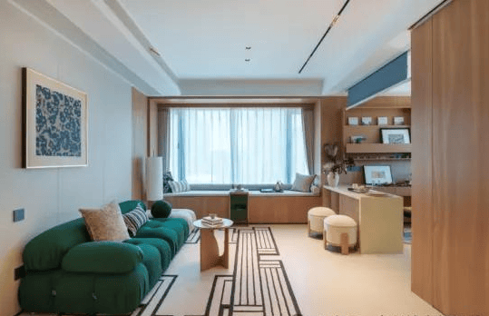 建面约92m²的样板间,据了解玖晟园所有户型均为3米层高,作为区域内稀缺的小面积边套,博得了更多业主的喜爱。