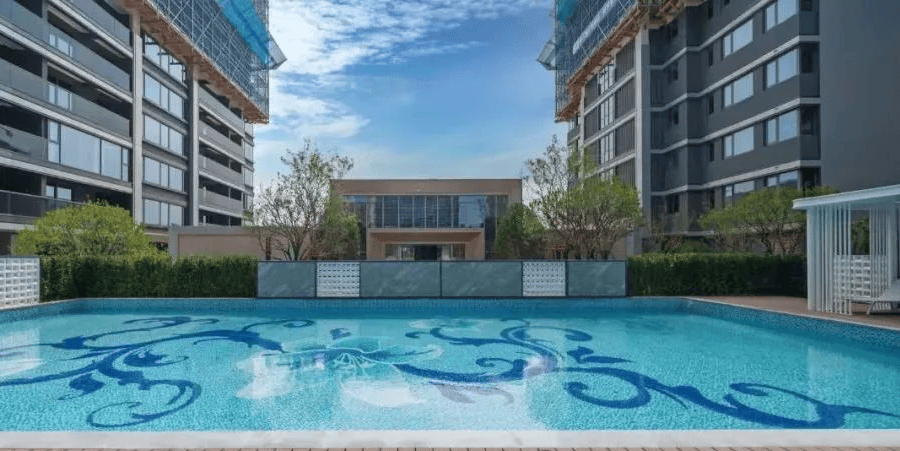 玖晟园以“一环玖园”的设计规制打造园区景观。中央戏水池,底部拼花材料全面对标杭州【武林壹号院】,配合休闲廊架,让业主享受足不出户的度假感受。