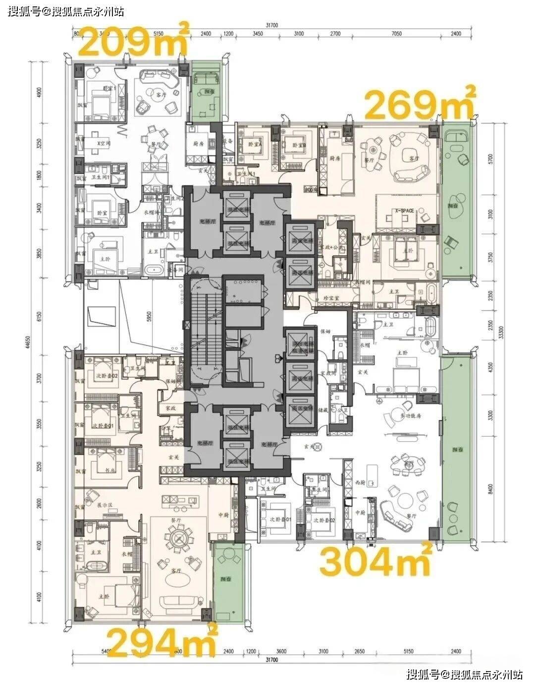 269-304㎡四房/4+1房:269㎡带家政套间,294㎡多一个“+1灵活空间”(可做书房/茶室),304㎡四卫全明,适合多代同堂,总价3800-5000 万。