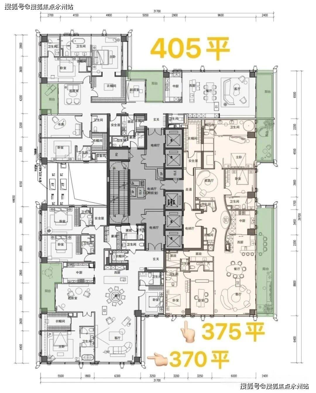 王牌户型:375㎡4+1 房五卫(四套间+家庭厅+家政套间)—— 这是我们团队一致认为的“最优解”。