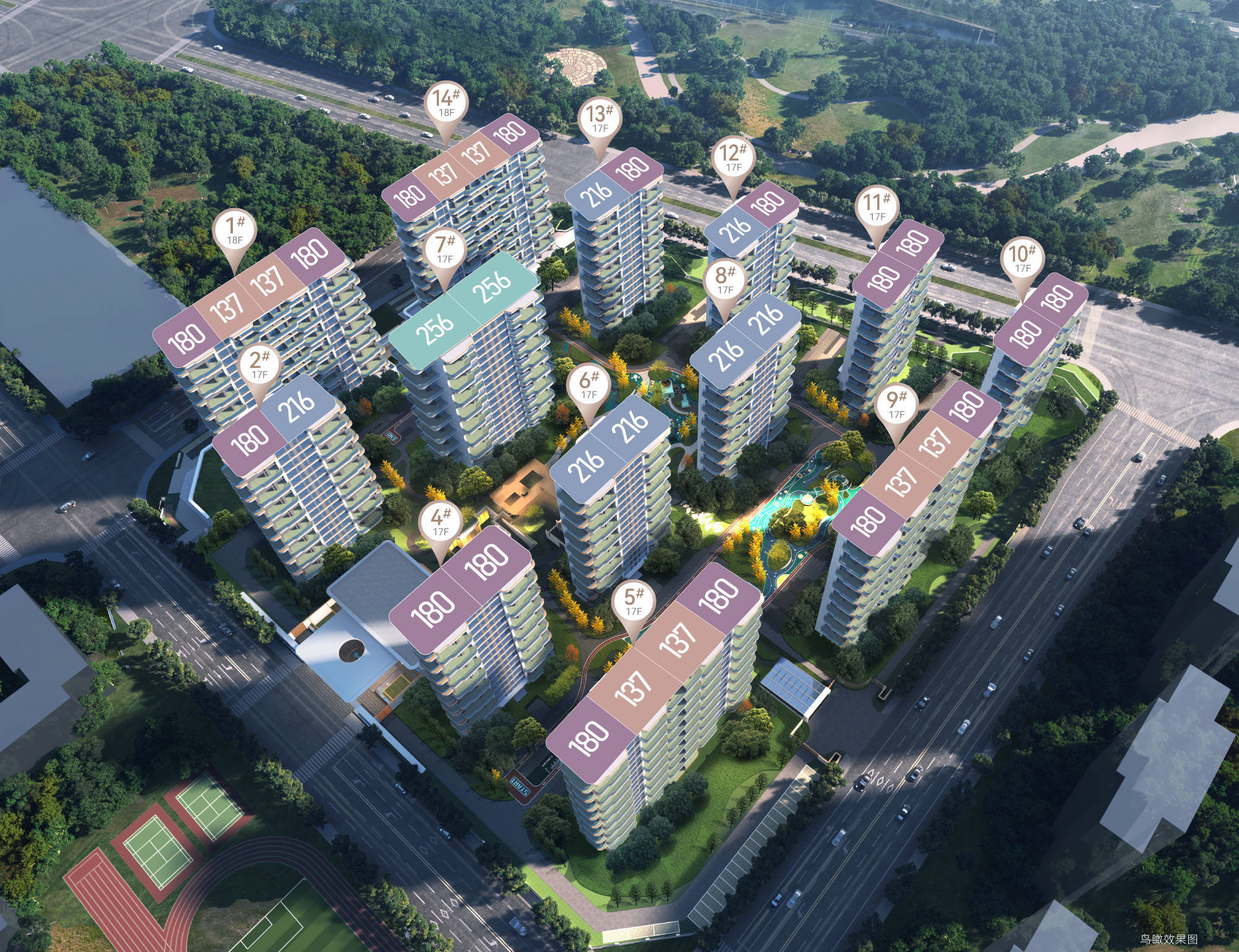 通过垂直绿化、空中花园、屋顶绿化、住宅阳台绿植等建筑空间手法,为郑州许一座花园私岛,创造「私屿双庭云墅」奢居。