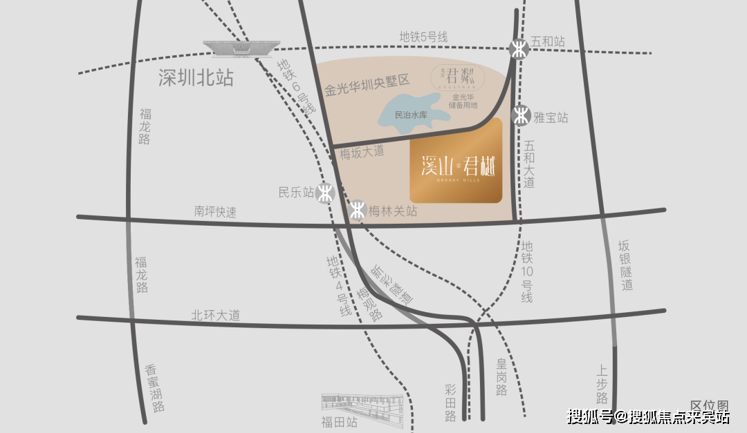 【立体枢纽加速度·让大人物从容转瞬圳央】“湾区级交通网格”:近拥深圳北站—五和双枢纽,一小时大湾区各城从容出行,畅达全国“地铁网格黄金交叉点”:深圳地铁10号线条地铁线站速达福田,将时间留给都市沉浸享受。“南坪快速连通道”:项目东侧快速接驳干道直连南坪快速,专享无阻碍快速路,接驳南坪通达全城。