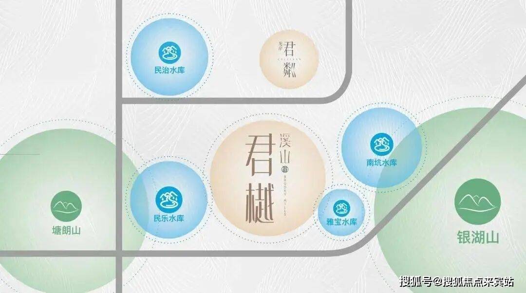 【宽怀壮阔·无价湖山】比肩世界湖区的优越资源:溪山君樾位处深圳“中心湖区“,是深圳最稠密的湖区所在地,项目周边环伺4大自然生态湖泊---民治水库、民乐水库、雅宝水库、南坑水库,居住在此,湖岸微澜风光无限,滋养健康涵养心境,孕育都会生活于家族贵雅之道;独享城市无价峰顶对晤湖景无垠的豁达高远。