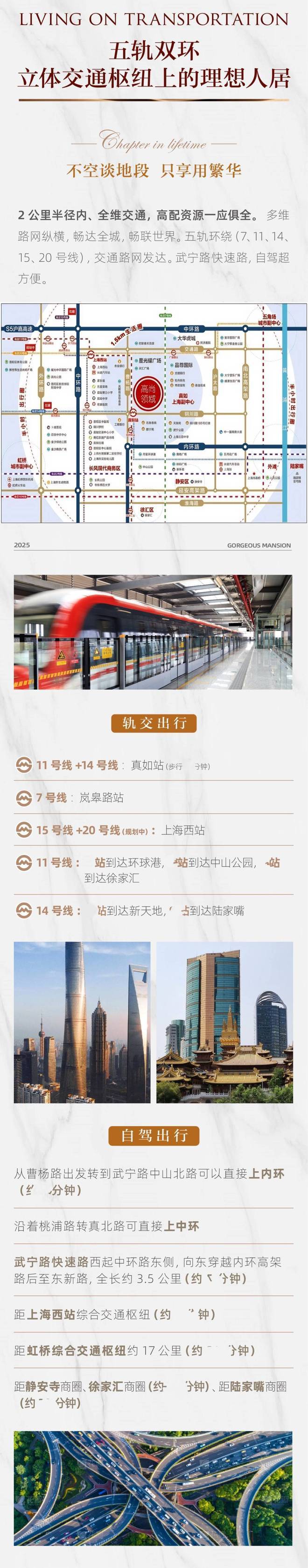 项目相邻普陀区主干道曹杨路,与轨交11号线号线号线号线紧密环绕,出行十分便捷;项目更相连虹桥交通枢纽与上海西站两大交通轴心;凭借内中环的地利优势,连接多条高速公路及城市高架,武宁路快速化改建工程也在加速推进中,建立纵横交错的三维立体轨道交通网。