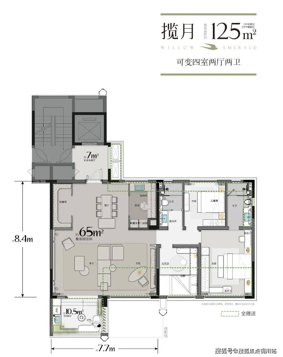 超大赠送面积(不计产权面积)+电梯前室拓展面积,139㎡最大综合建筑得房率达到136%,相较于传统的第三代住宅多近53平,整整送出了一套小户型房子,妥妥190+㎡大平层级别的享受。