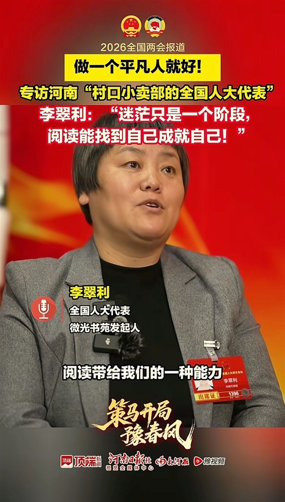 “迷茫只是一个阶段,阅读能找到自己成就自己!”十八年初心不改,来自安阳的全国人大代表李翠利,在村口自家小卖部开办免费“微光书苑”,用一点微光点亮乡村孩子的文化星空,事迹感动全网。
