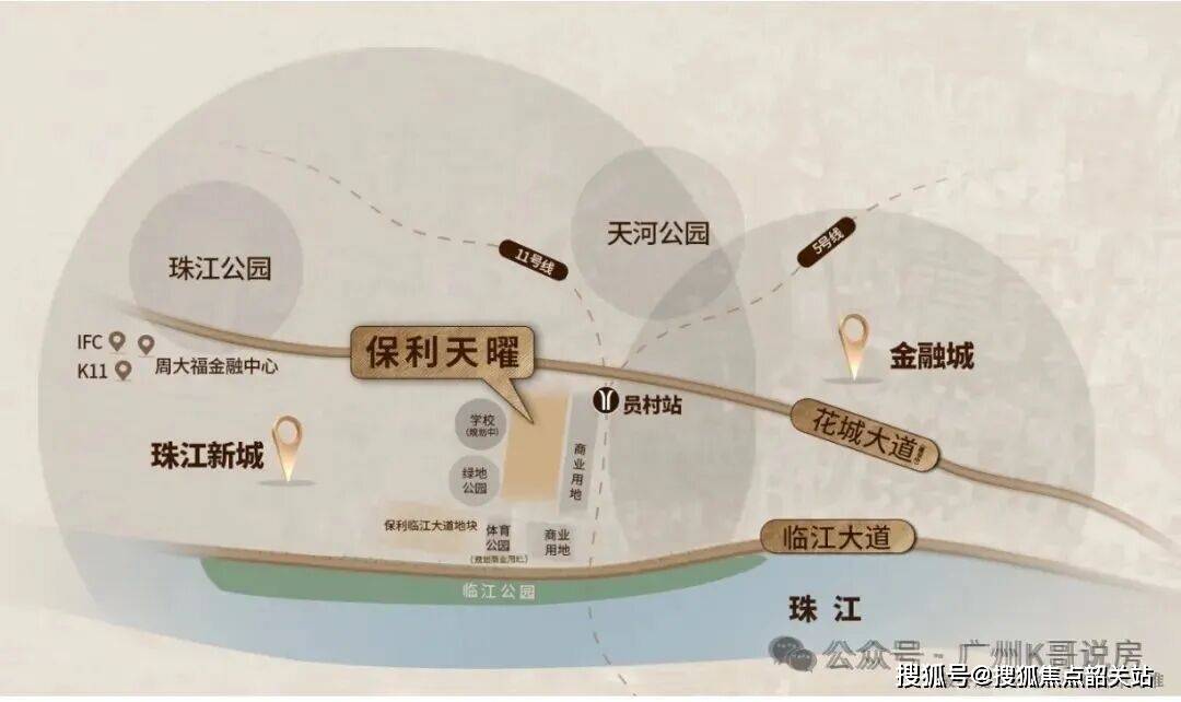 保利・天曜坐落于天河金融城西区核心位置,地处广州黄金三角几何中心,与珠江新城 CBD 直线 公里,与琶洲会展中心直线 公里,与广州塔直线 公里,尽享三大核心板块的资源辐射。金融城作为广州重点打造的国际金融中心,目前已入驻超 200 家金融机构总部,未来将汇聚超 50 万高端商务人群,成为广州经济发展的核心引擎。项目所在的金融城西区,是距离珠江新城最近的连片开发区域,未来将承接珠江新城外溢的高端居住与商务需求,发展潜力巨大。